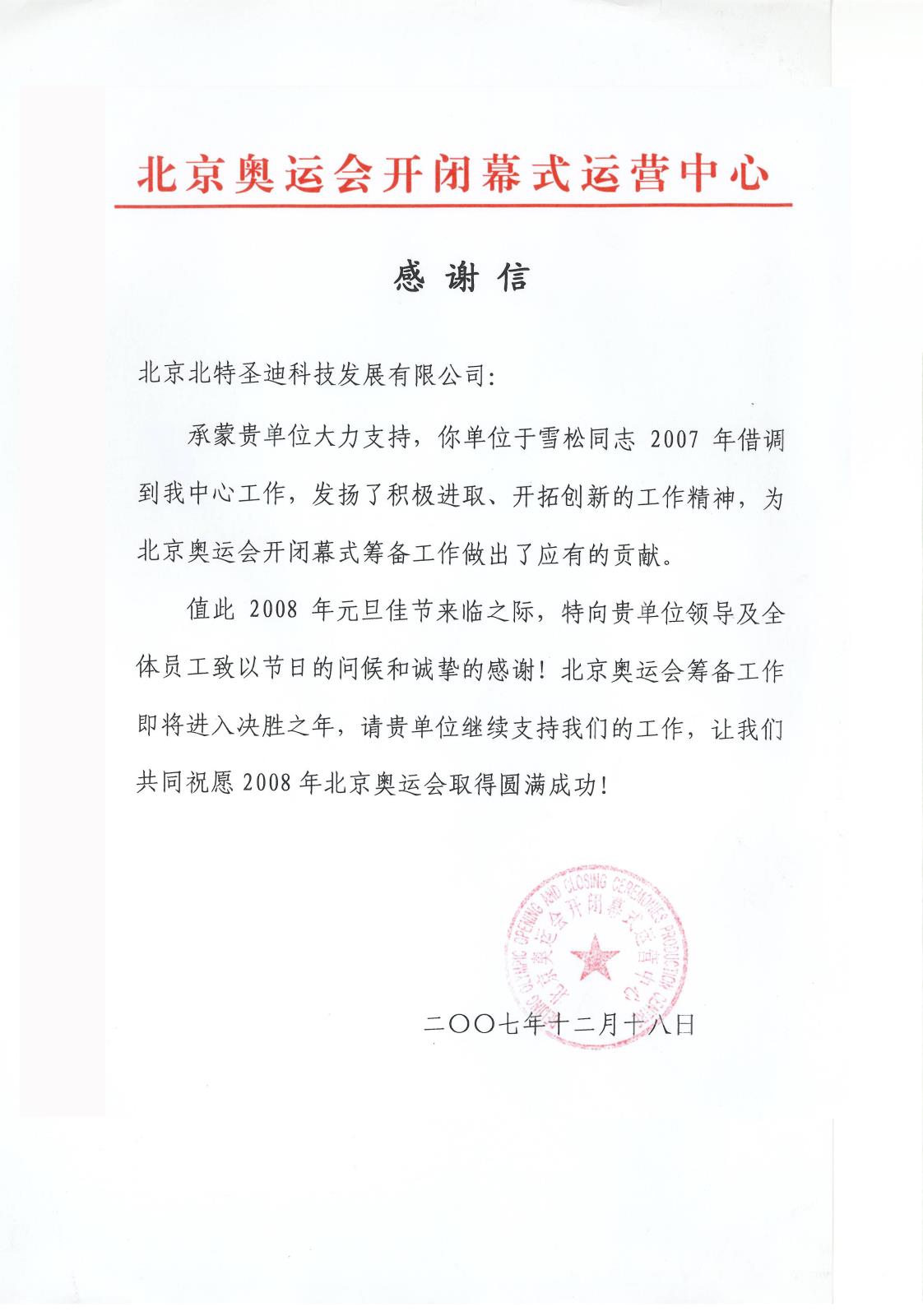 2008第二十九屆北京奧運會、殘奧會聘書-于雪松