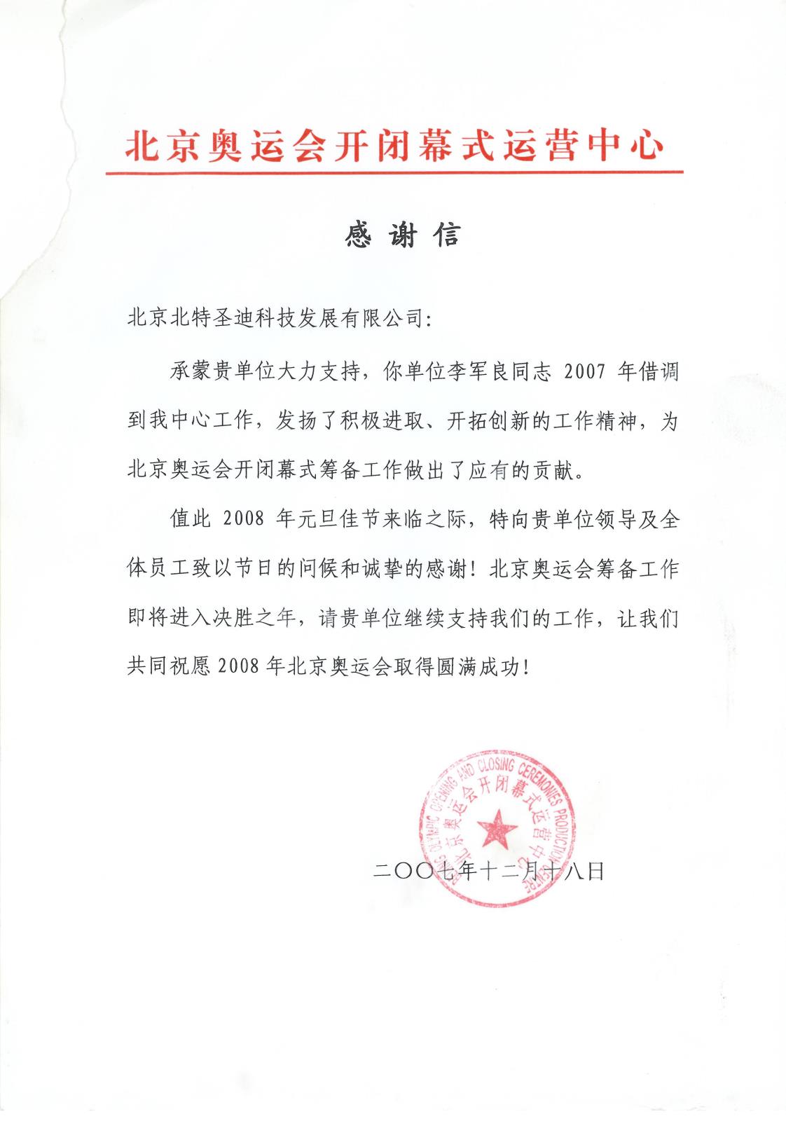 2008第二十九屆北京奧運會、殘奧會聘書-李軍良
