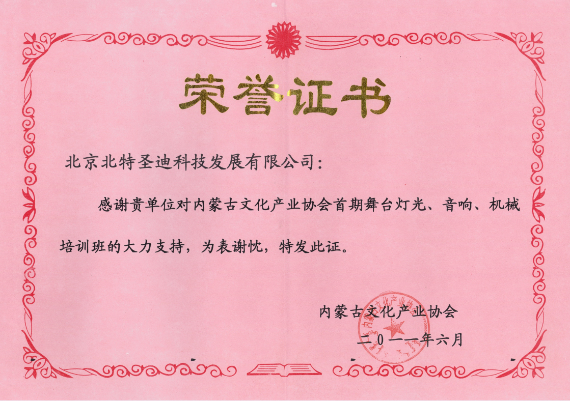2011內(nèi)蒙古文化產(chǎn)業(yè)協(xié)會榮譽證書