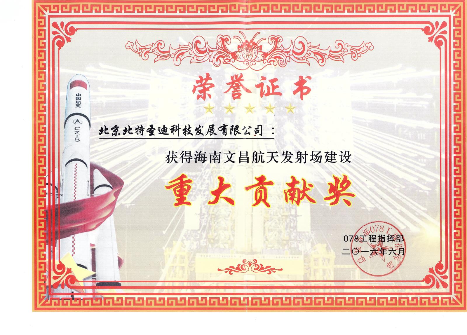 2016海南文昌航天發(fā)射場建設(shè)重大貢獻獎