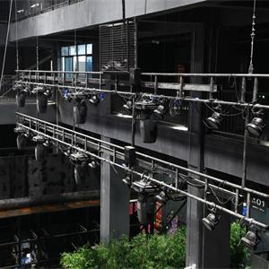 燈光吊架上配置用于燈光電纜收納的收線筐。注:燈光線槽、電纜、插頭、接線箱由燈光設備廠家完成。