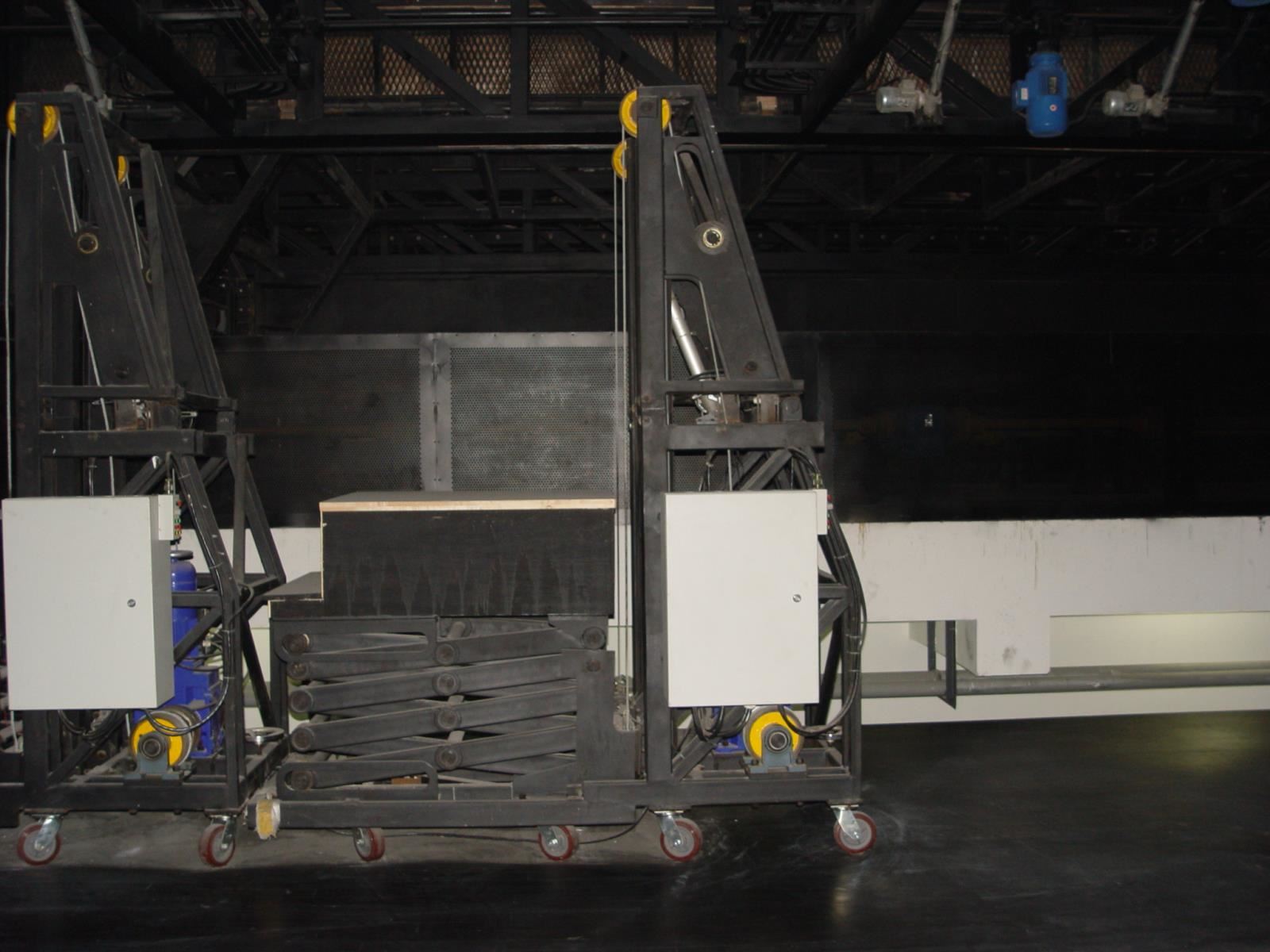 是一個可移動的舞臺機械設(shè)備,用于雙層升降臺的下層臺板上。
