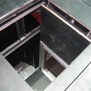 演員升降小車采用無振動型鋼框架結(jié)構(gòu),框架結(jié)構(gòu)內(nèi)裝有可升降臺板,臺板有足夠的硬度、用木板鑲面。