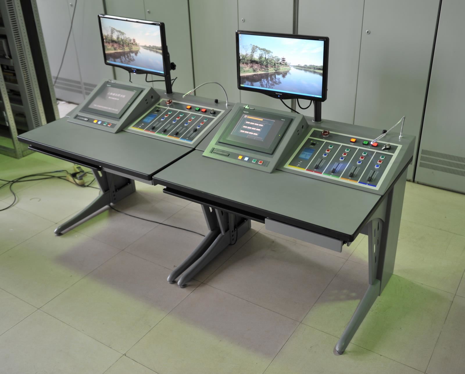 一般包括:臺上舞臺機械控制系統(tǒng)和臺下舞臺機械控制系統(tǒng)。臺上舞臺控制系統(tǒng)由控制室內(nèi)的主控制臺柜和便攜式操作臺組成;臺下舞臺控制系統(tǒng)由控制室內(nèi)的主控制臺柜和便攜式操作臺組成。控制臺柜主要包括上位機(IPC)和下位機(PLC)兩部分,具備自動和手動控制功能。