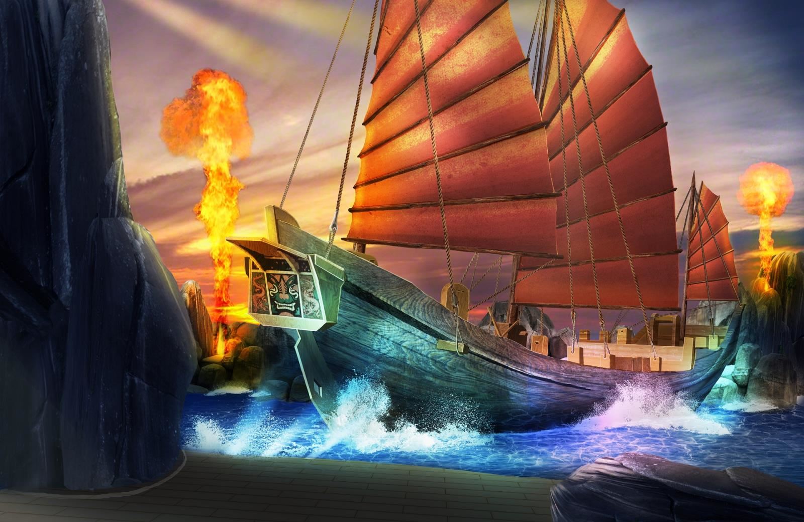 (1)大船可實現前后左右顛簸的動作,呈現大海中航行的動感效果;