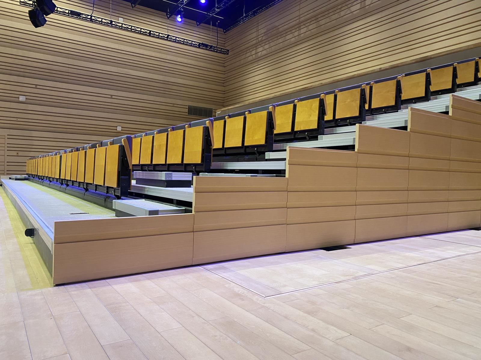 活動看臺可電動展開和收攏,當排數較少時,也可以采用人工的方式展開和收攏。