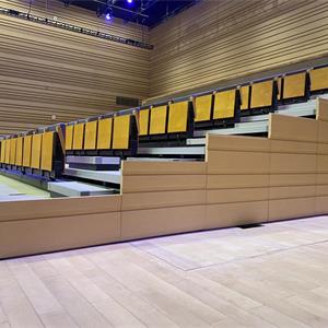 活動看臺是一種可靈活調節空間布局的座椅系統,廣泛應用于體育館、劇場、展覽館等場所,使場館在平面大廳與看臺之間轉換。